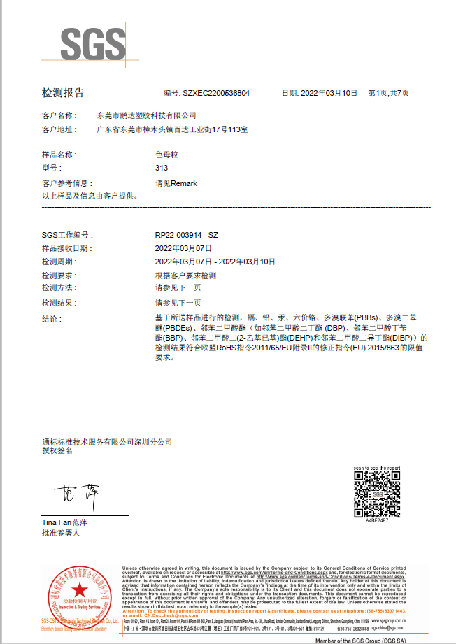 東莞市鵬達塑膠科技有限公司是一家集色母、色粉、功能母粒、染色抽粒、改性工程塑料的研發、生產、銷售于一體的生產企業,座落于中國塑膠商貿重鎮-廣東省東莞市樟木頭鎮,公司建立了一套完善的研發生產、品質管理、銷售服務體系,依托自身強大的研發能力及嚴謹高效的管理,生產高品質、高技術含量的健康環保色母粒和多功能母粒,年生產能力達萬噸,給廣大客戶提供了可靠的交貨保障。